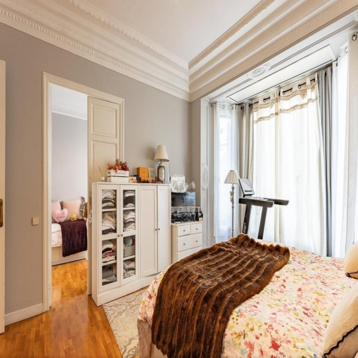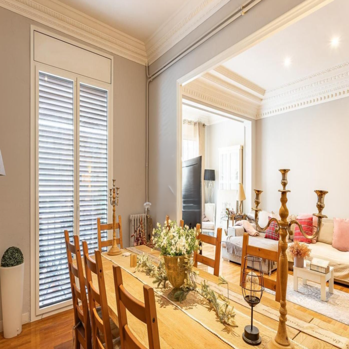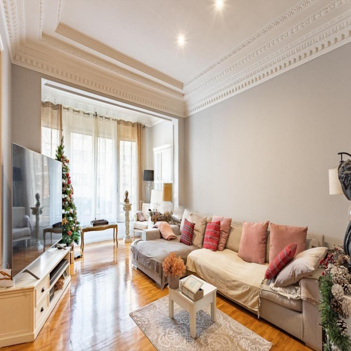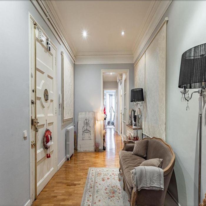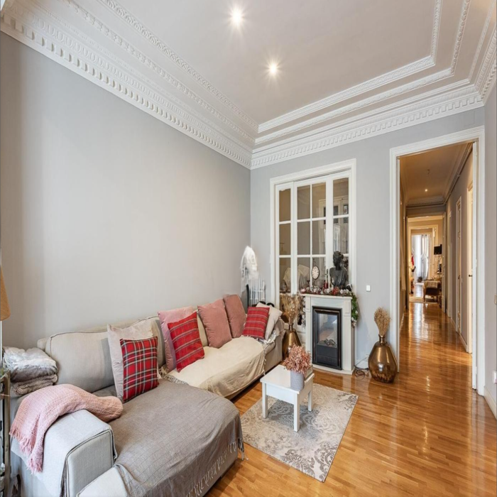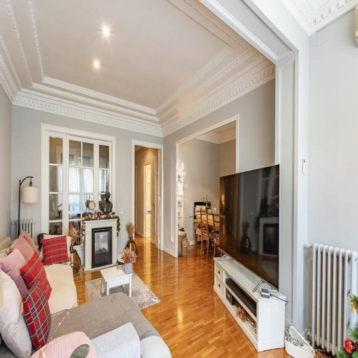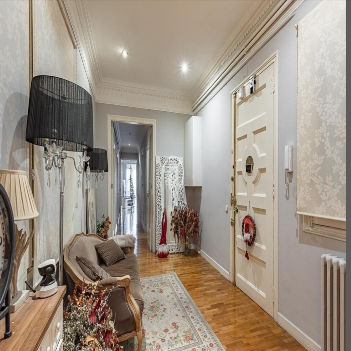 El piso se destaca por las molduras de sus techos, la calidad de su piso parque, calefacción a gas, persianas de seguridad instaladas en todos sus ventanales con doble acristalamiento que ofrece no solo un aislamiento térmico sino también auditivo.