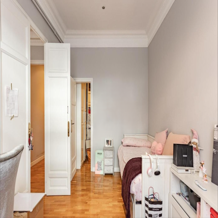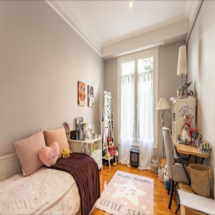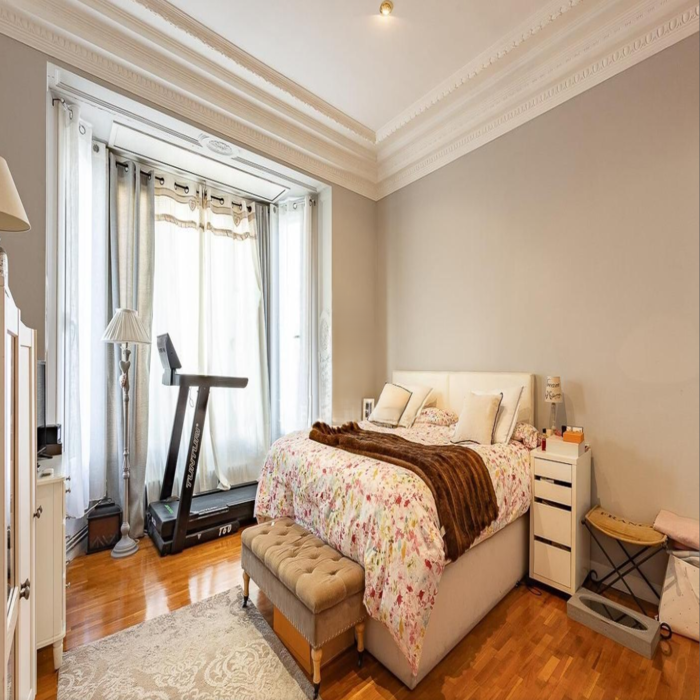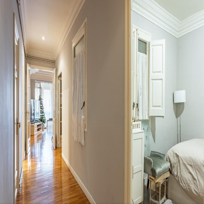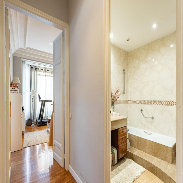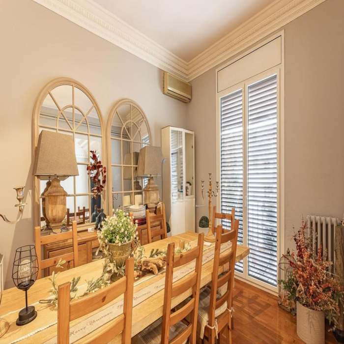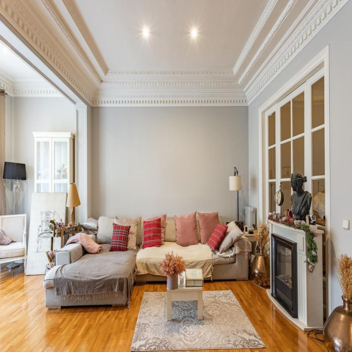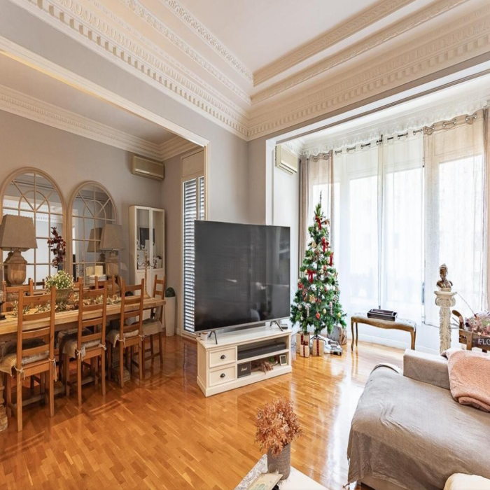 El piso se destaca por las molduras de sus techos, la calidad de su piso parque, calefacción a gas, persianas de seguridad instaladas en todos sus ventanales con doble acristalamiento que ofrece no solo un aislamiento térmico sino también auditivo.
