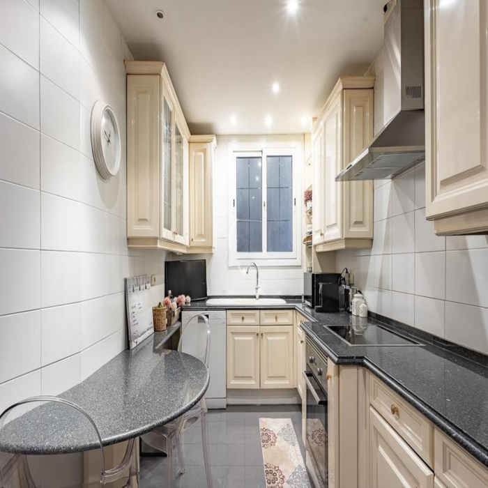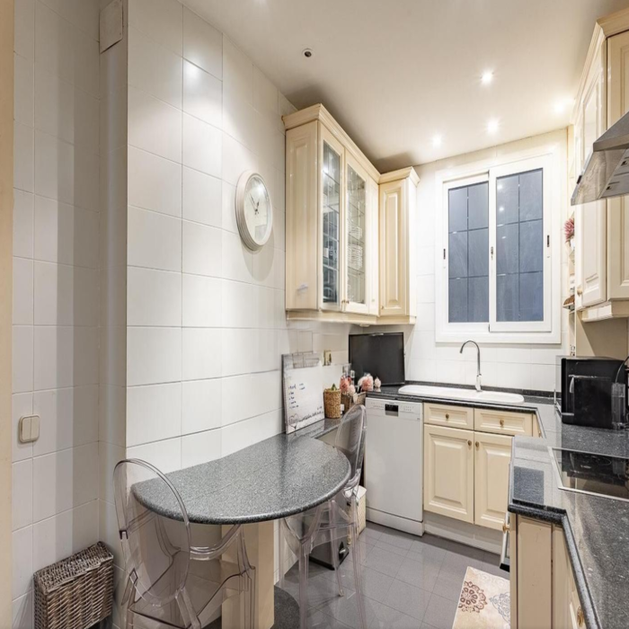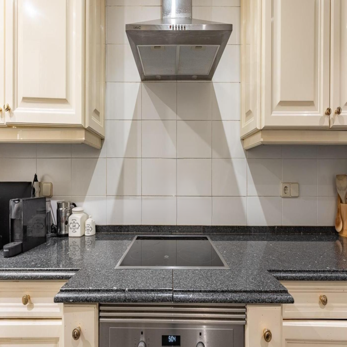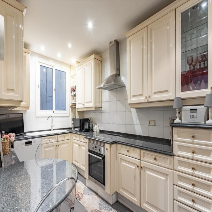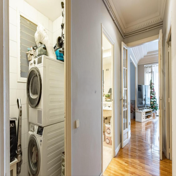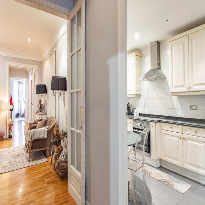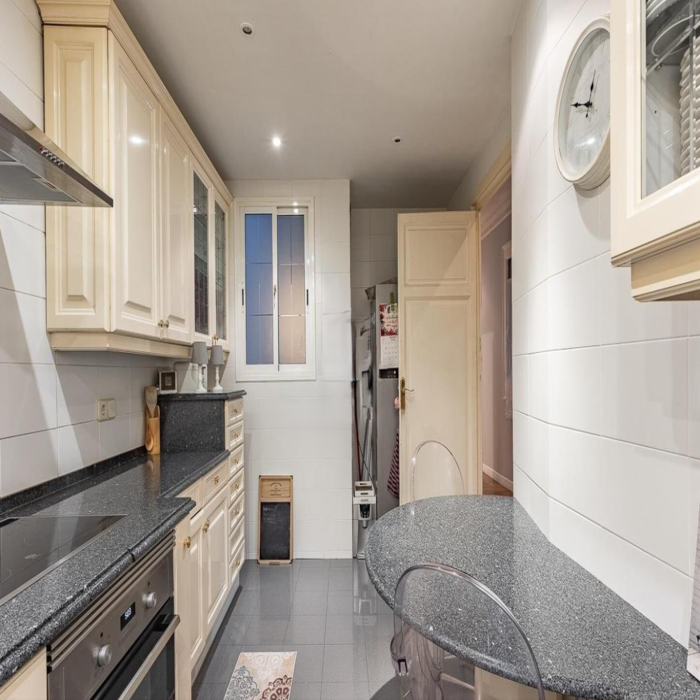 El piso cuenta con una cocina-office equipada junto a sala de maquinas. Ademas tiene un amplio salón-comedor de 60m² muy luminoso por sus grandes ventanales orientado al suroeste. Acompaña un despacho auxiliar con puertas acristaladas con vistas al comedor, que permite un espacio de trabajo.