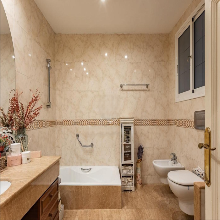 Con una distribución de cinco habitaciones; de las cuales se distingue una master suite, dos dobles y 2 individuales. Acompañadas por dos baños amplios y completos con bañera.