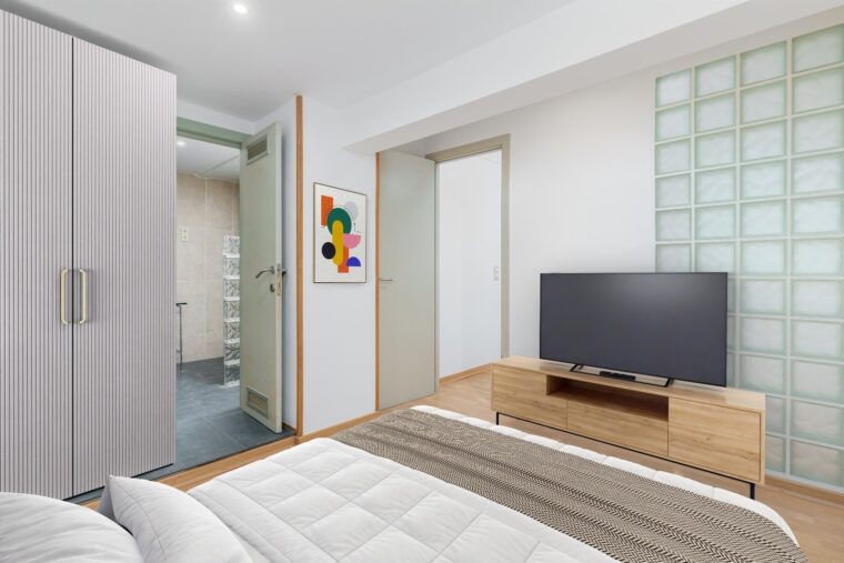 Subiendo a la planta superior, una pasarela te llevará a las dos habitaciones dobles, espaciosas y luminosas, donde podrás disfrutar del confort y la privacidad. En esta planta también encontrarás un amplio cuarto de baño, moderno y bien distribuido. Las dos habitaciones están equipadas con aparatos de aire acondicionado con bomba de calor, lo que te asegura un clima agradable durante todo el año.