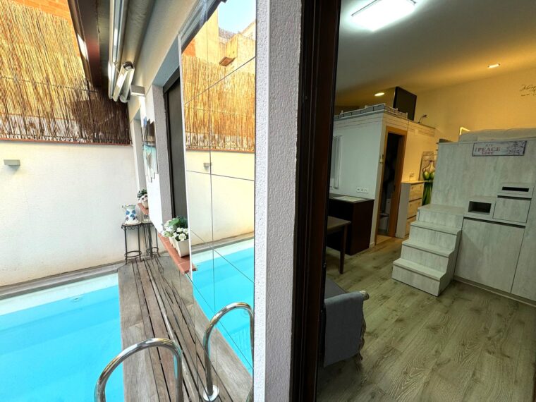 La vivienda consta de 113 metros útiles divididos en la vivienda principal, un patio con piscina y un segundo espacio adicional.