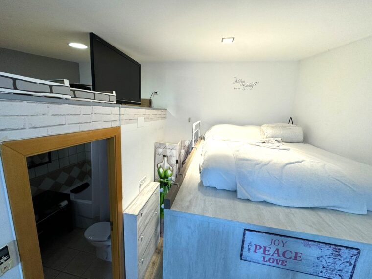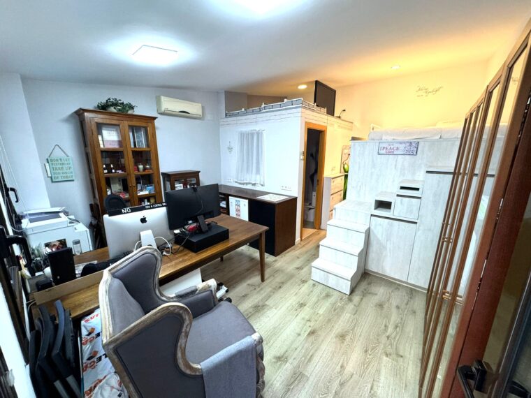 Finalmente, en la segunda parte de la vivienda, encontramos un espacio loft el cual consta de un despacho abierto, un cuarto de baño completo y una estructura con cama de matrimonio y vestidor.