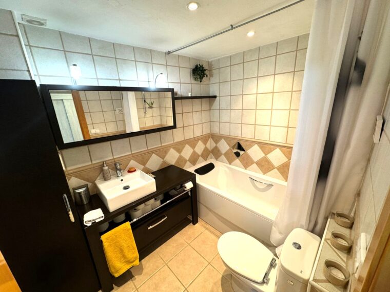 Por otro lado, encontramos un cuarto de baño completo y una habitación doble de matrimonio.