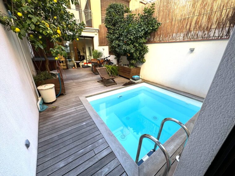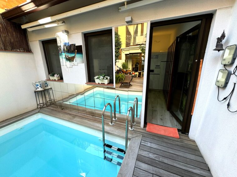 Una vez salimos al exterior desde el salón-comedor encontramos una increíble terraza de 24 metros con piscina donde podrás relajarte y disfrutar de momentos de ocio al aire libre.