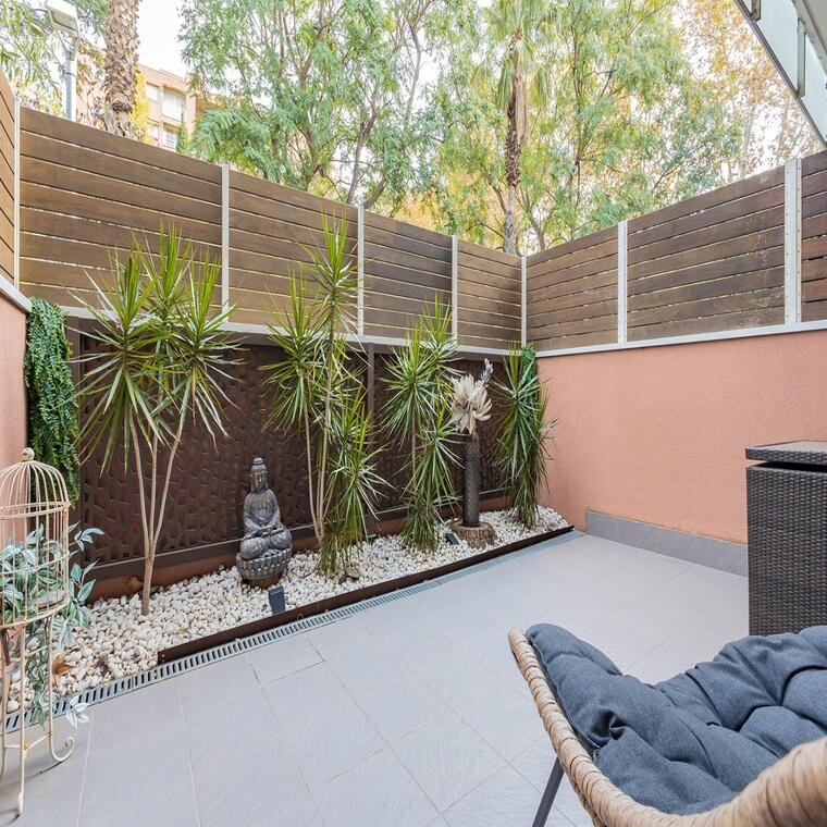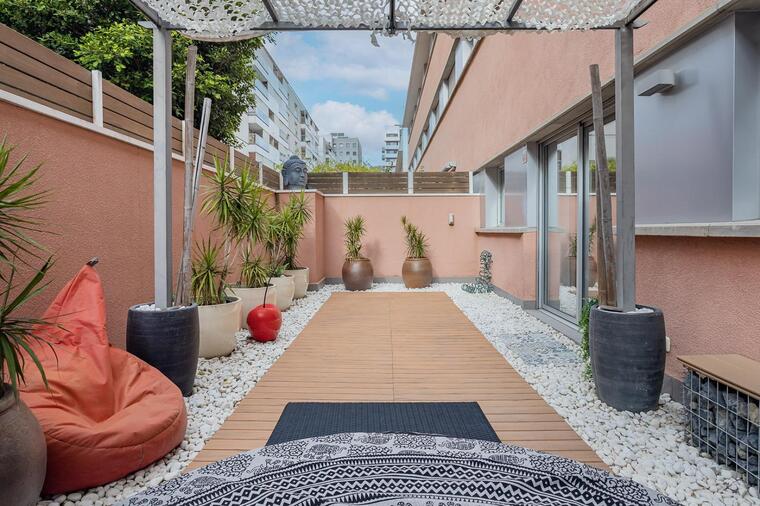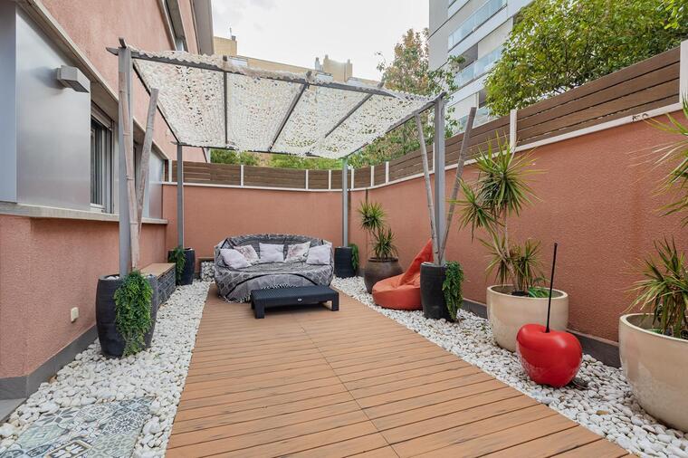 El amplio salón comedor esta seguido de un encantador patio interior de 29 m² que ofrece máxima privacidad y brinda una zona chill out.