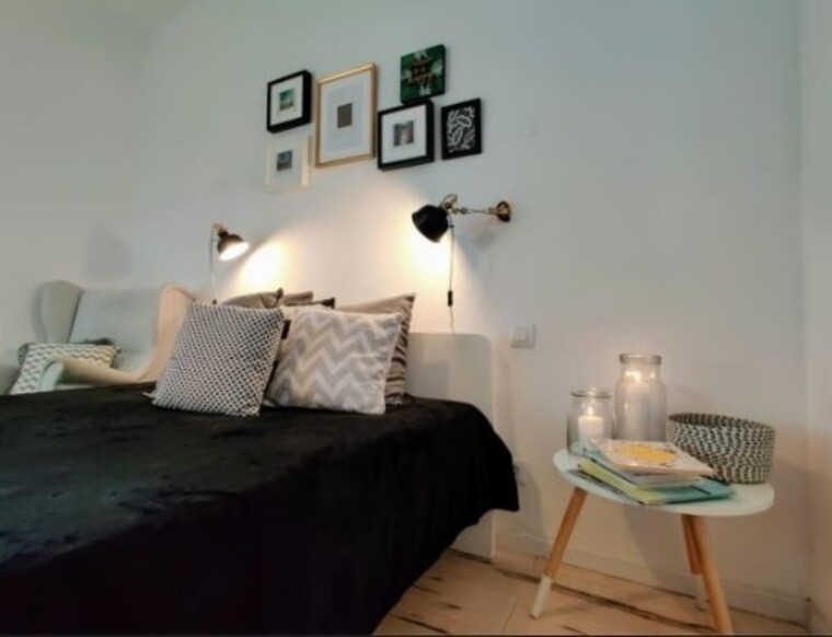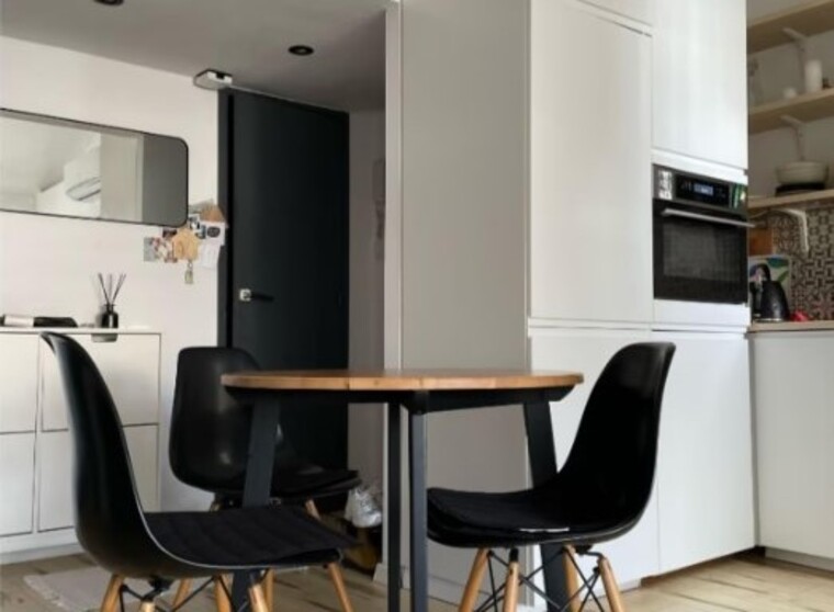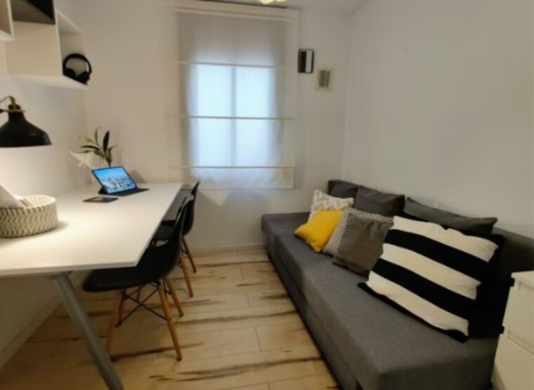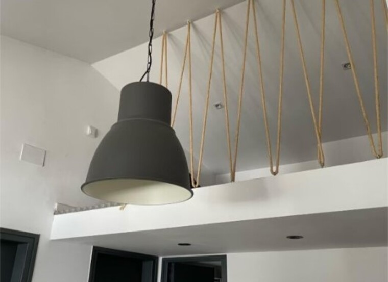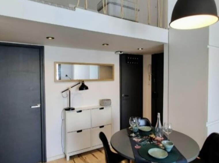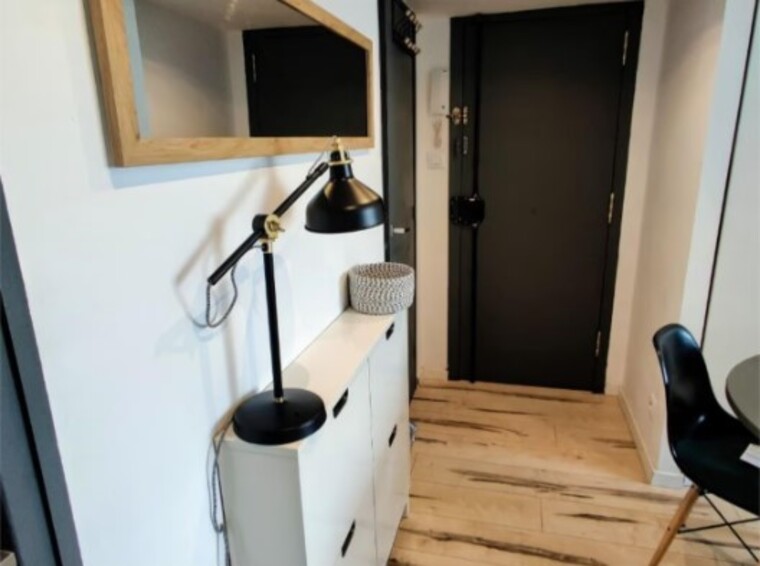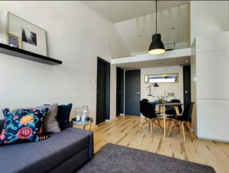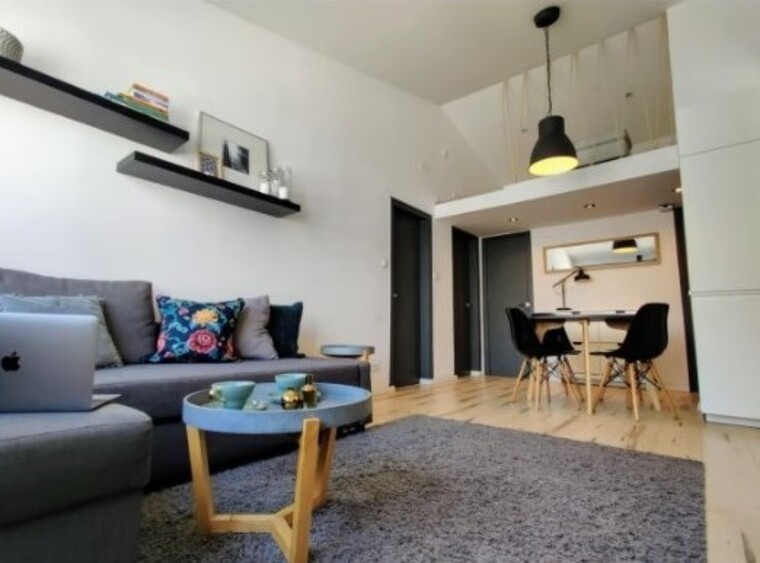 El apartamento consta de dos amplias habitaciones, un salón con cocina abierta y un baño. Además, cuenta con un altillo que puede ser utilizado como espacio de almacenamiento, una habitación adicional o una zona de relax.